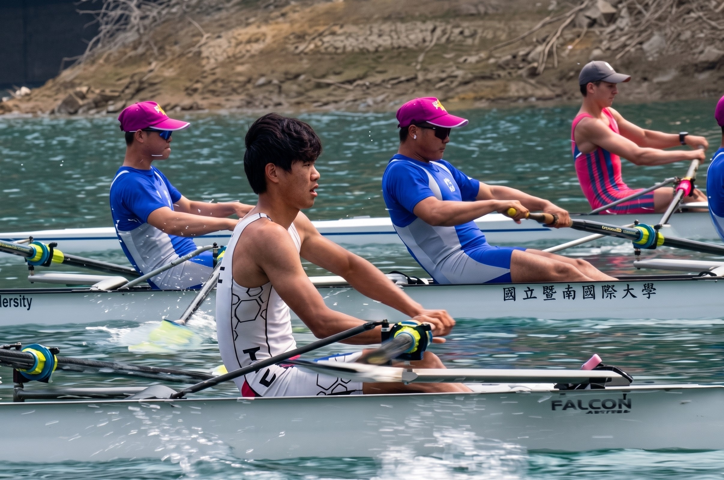 公開男生組四人單槳艇決賽由國立暨南大學與臺北市立大學上演高張力對決,兩校在水道上展開激烈拉鋸,戰況一路緊咬至終點。